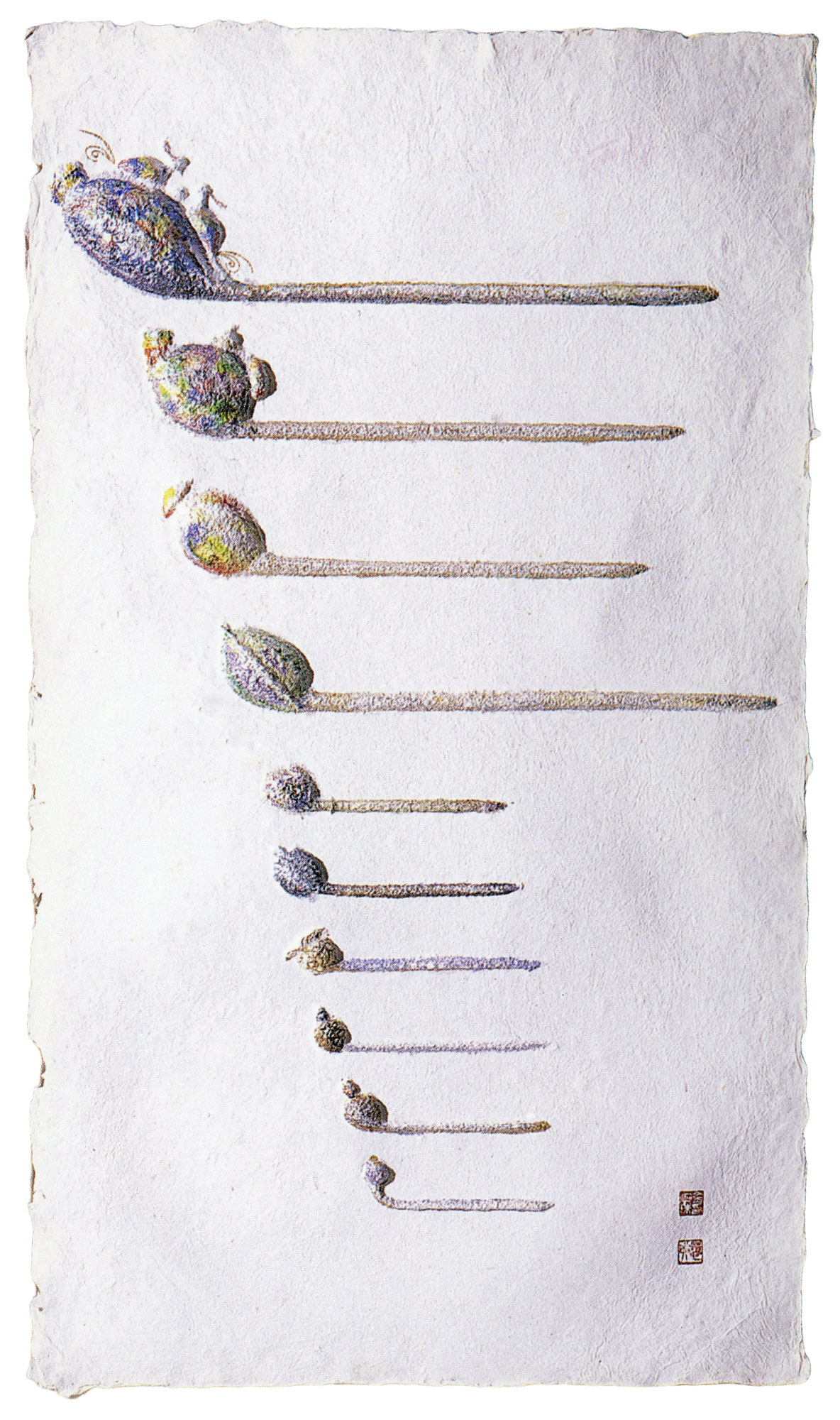 Ornamental hairpins, 2001Korean paper from Mulberry, Oriental dyestuffs, acrylic on paper1700×1100 mm