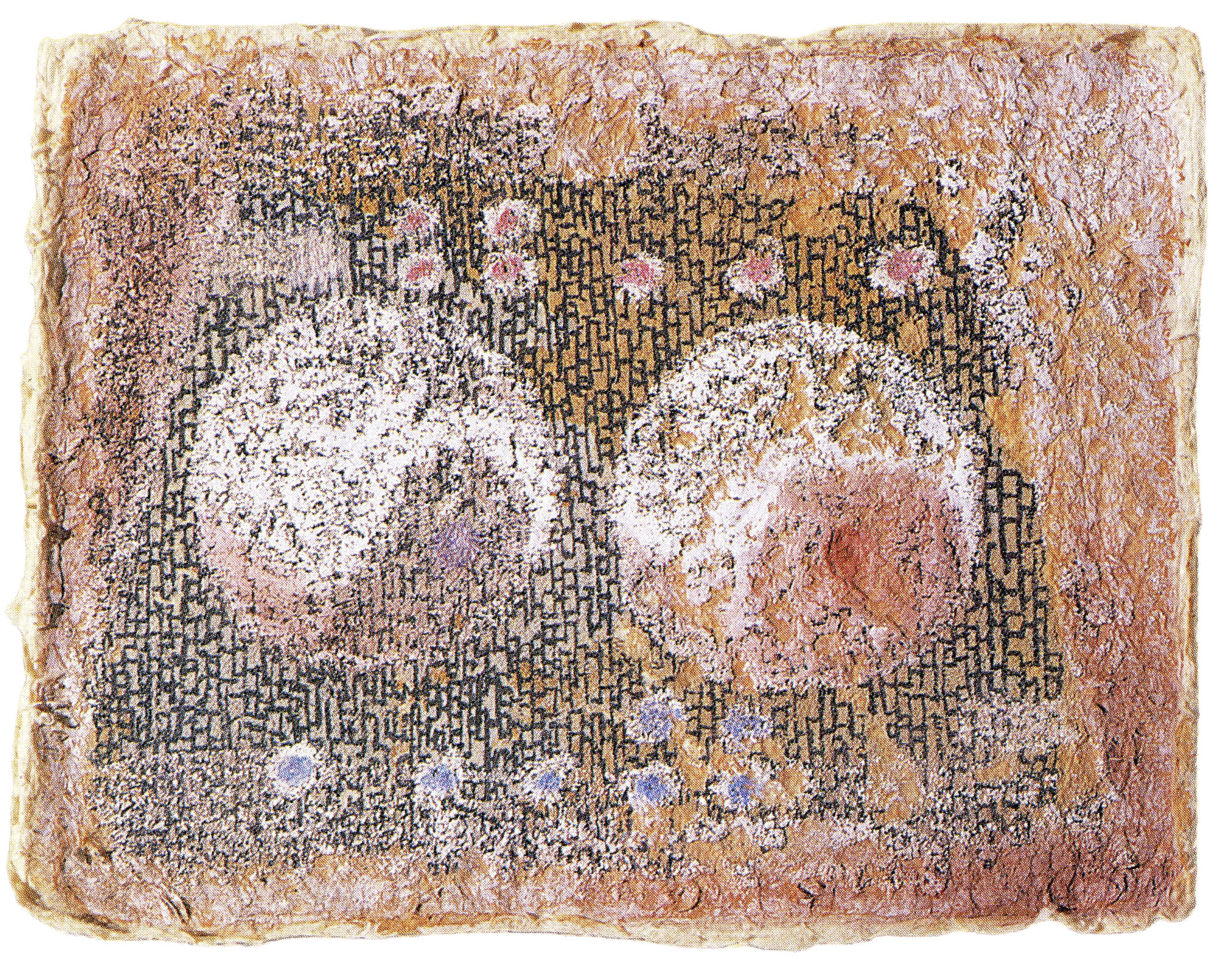 The sun and the moon, 2000Korean paper from Mulberry, Cosmetic powder, Crayon, Ink stick665×580 mm